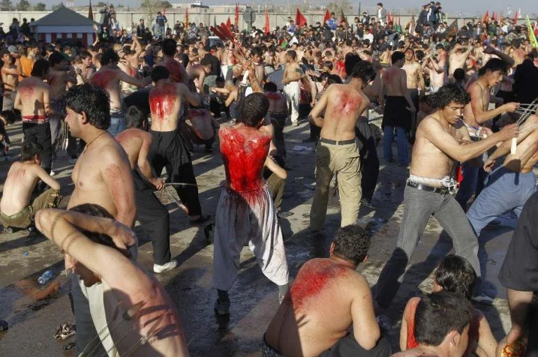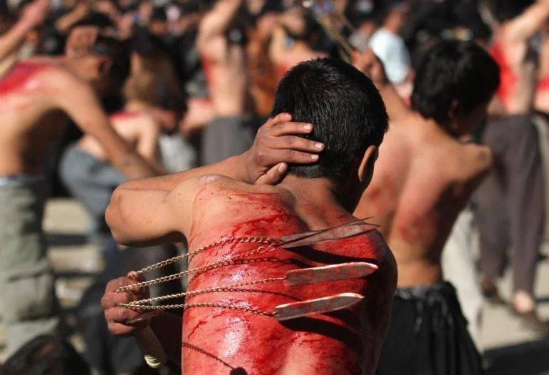 Hitting with chains and sharp objects to mourn the death of Imam Hussein.