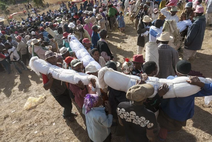 Also known as Famadihana, Dancing with the dead is a funerary tradition during which the family crypts are opened up and the remains of dead ancestors are brought out to be wrapped in a new cloth. Music, dance and animal sacrifice are also a part of this festival.
